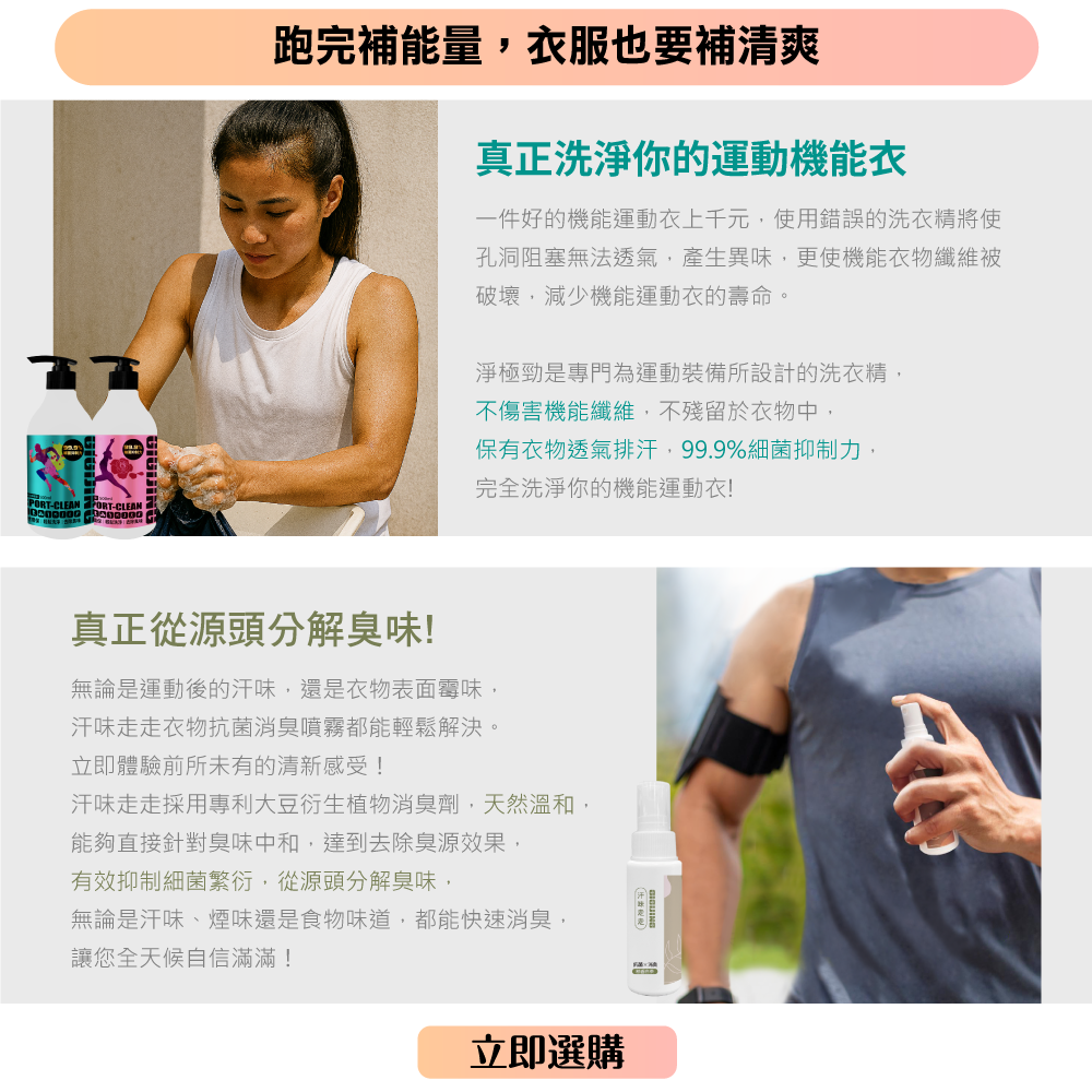 一瓶洗衣、一瓶去味,運動完也能保持清新