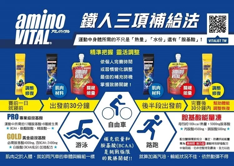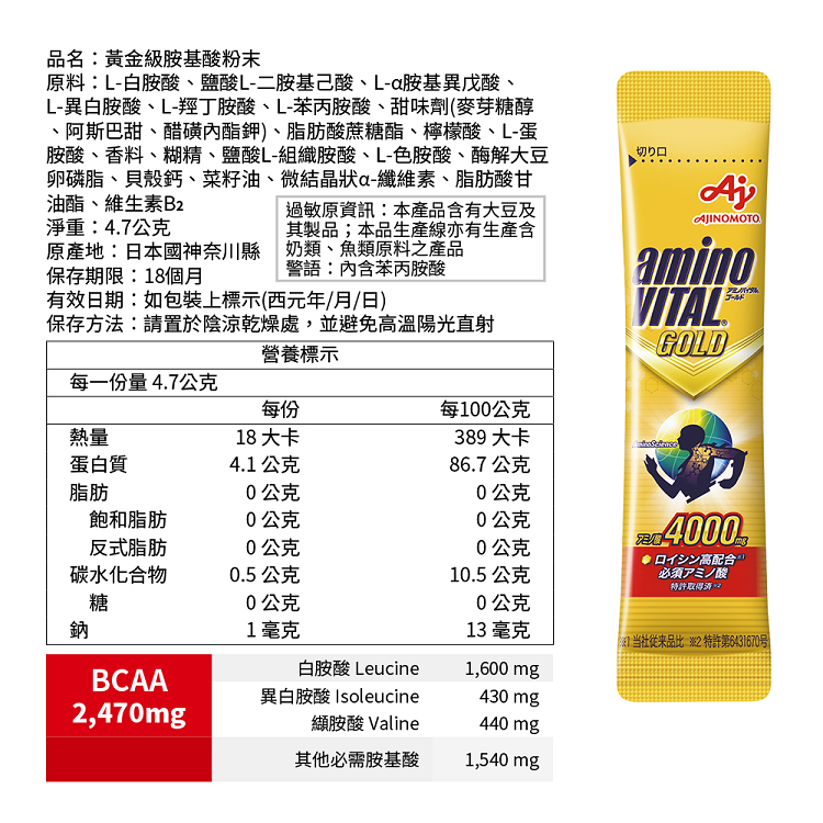 以BCAA-白胺酸(Leucine)為關鍵成分,開發高含量必需胺基酸4,000mg, 幫助選手調整最佳狀態以面對激烈的挑戰!