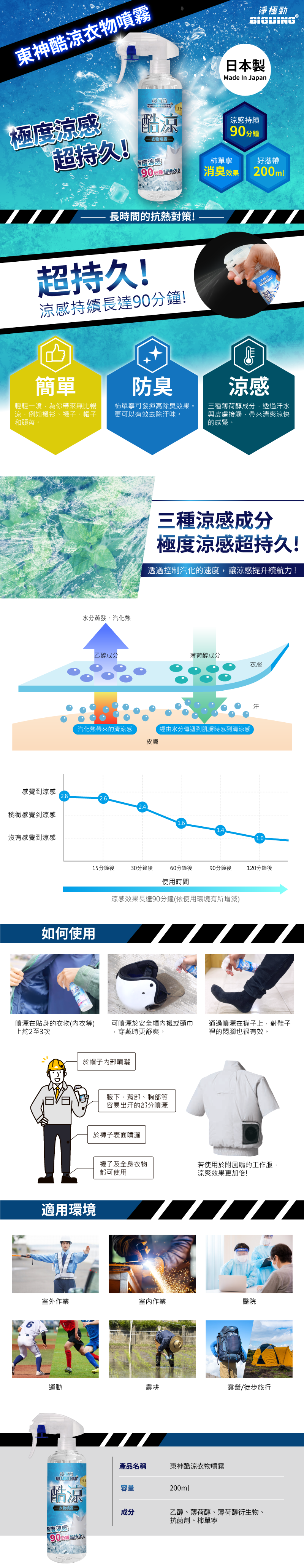 ✔與汗水及體溫結合,帶來爽快的清涼感!