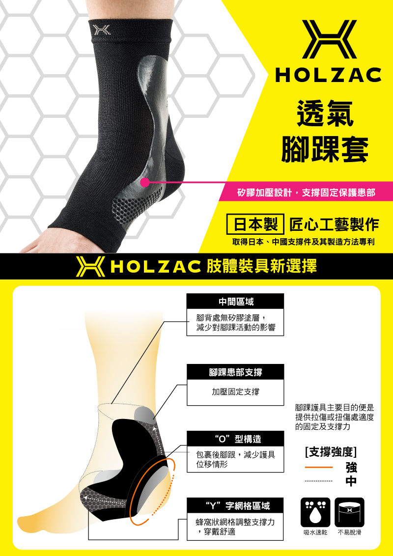 ● 繃帶一樣精準包覆腳後跟及跟腱處,為腳心提供主動支撐,防止腳心下垂。