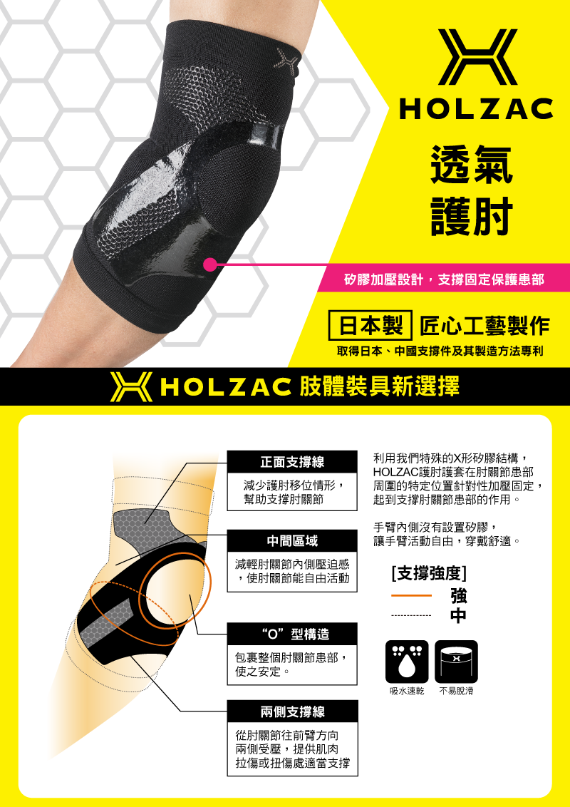 ● X型網狀矽膠,固定肘部關節,階段加壓,穩定關節並減少應變。