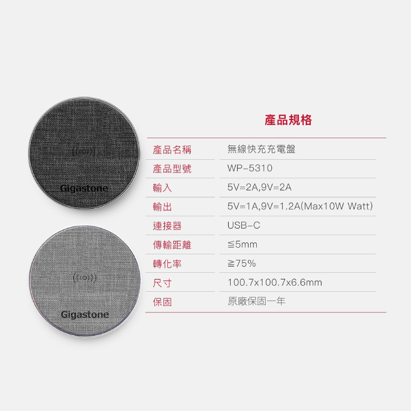 ►產品名稱:GIGASTONE 10W 布質無線快充充電盤