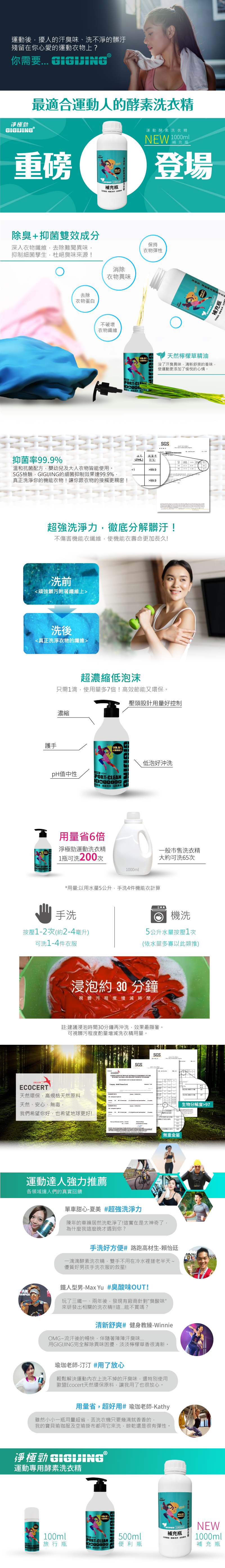 ★中性溫和洗劑,分解衣物汗臭味同時不破壞運動機能衣物的纖維結構。