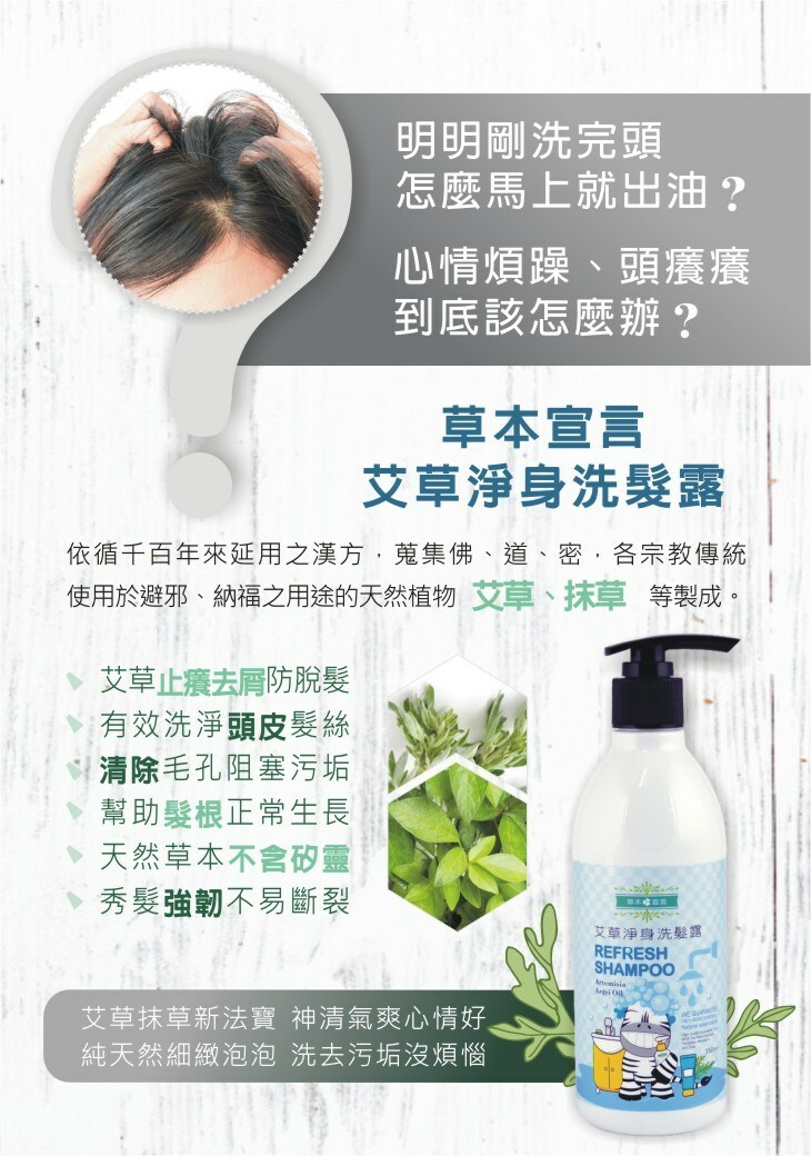 萃取艾草與抹草精華,淡雅清新的芬芳氣息,輕鬆去除皮脂污垢與穢氣、趨吉洗出好神氣,感受長時間的清新舒適。