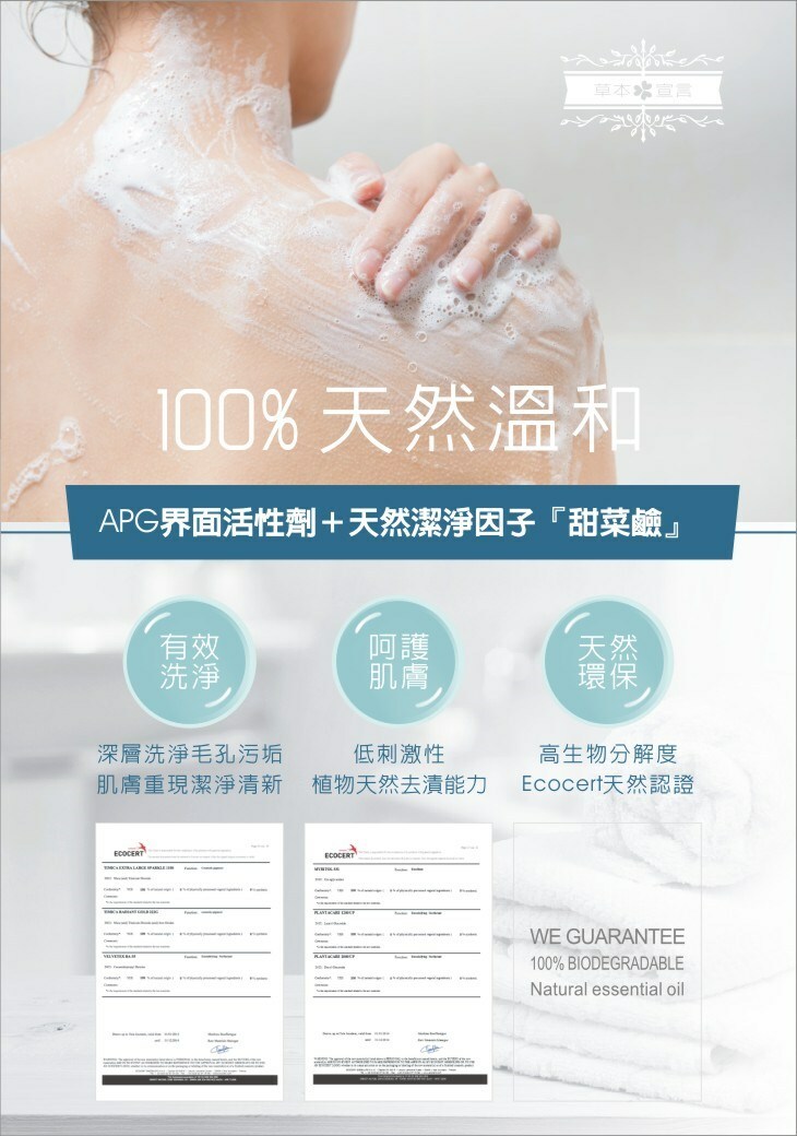 🔹以ECOCERT歐盟有機認證的椰子油、玉米等製成的APG®作為潔淨因子。