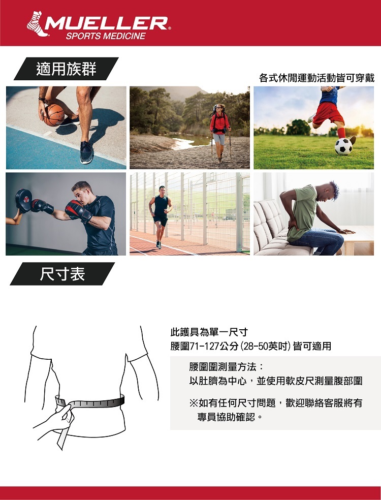 ● 單一尺寸,腰圍71~127cm適用