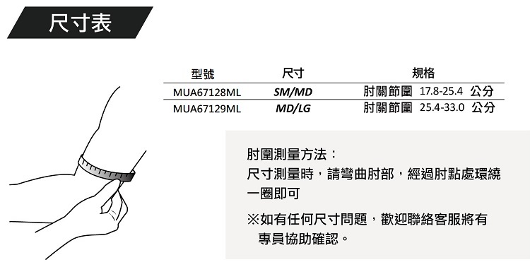 • 適用範圍:輔助穩定肘部,提供支撐及壓縮。