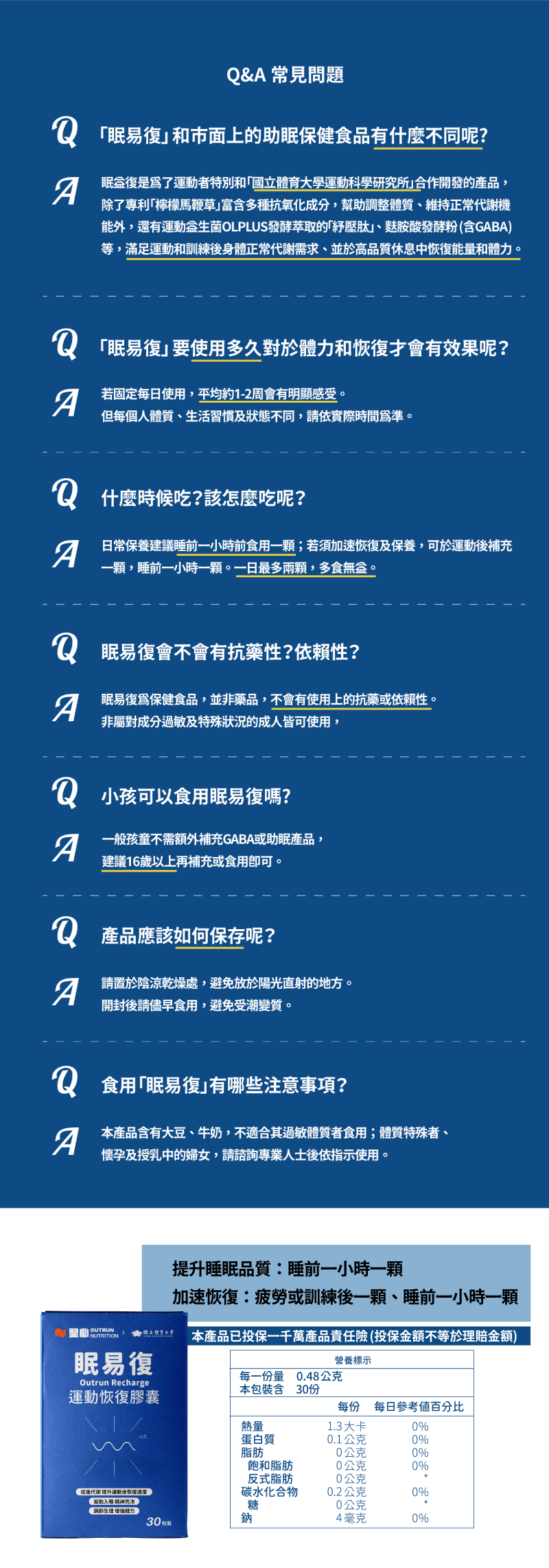 建議食用方式:每日睡前一小時一顆;加強保養:訓練後一顆、睡前一小時一顆